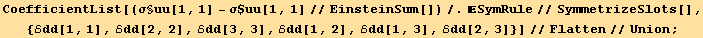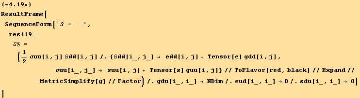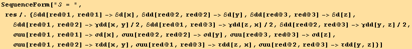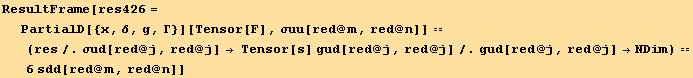 On the other hand, we can also differentiate S§. For this we need to simplify the derivation of a tensor component by another component of the same tensor (which must of course be independent). This is done using TensorComponentsD[g].