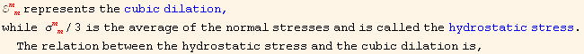 Hydrostatic stress s and cubic dilation e of are defined by the rule :