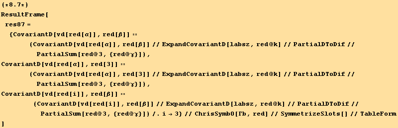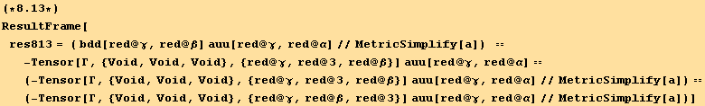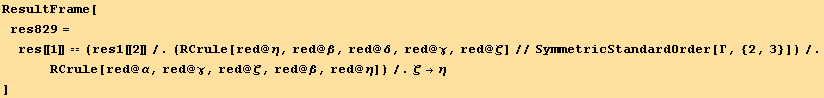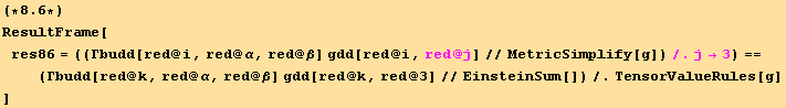 ResultFrame[res85=(%//EinsteinSum[])/.TensorValueRules[g]]