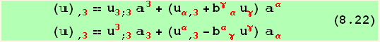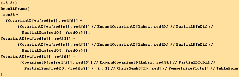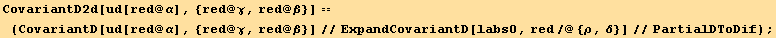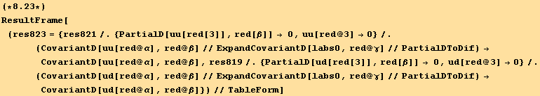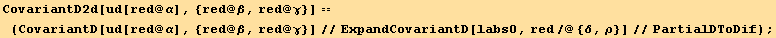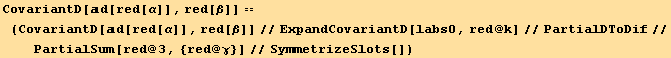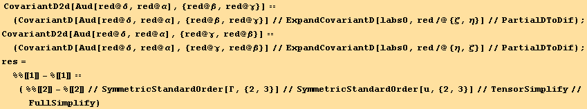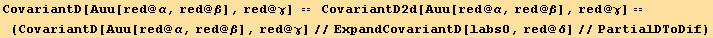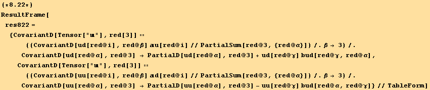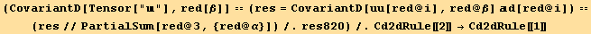 res817=CovariantD[Tensor["u"],red[β]]==(res=CovariantD[ud[red@i],red@β] au[red@i])==(res//PartialSum[red@3,{red@α}])