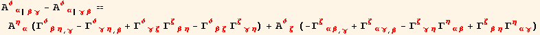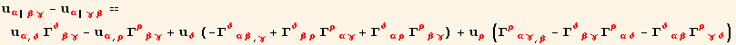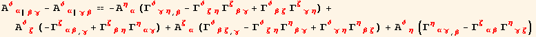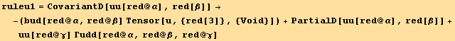 Γudd[red@ρ,red@α,red@β]Γudd[red@σ,red@δ,red@ρ]-Γudd[red@ρ,red@α,red@δ]*Γudd[red@σ,red@β,red@ρ]-PartialD[Γudd[red@σ,red@α,red@δ],red@β]+PartialD[Γudd[red@σ,red@α,red@β],red@δ] → Ruddd[red@σ,red@α,red@δ,red@β]