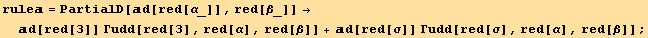 PartialD[-%[[1]],red[α]]/2==0