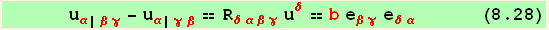 Equation (8.27) shows immediately all the symmetries of the 2d Riemann-Christoffel symbol : Antisymmetry with respect to the two first and between the two last symbols, symmetry between the two first and the two last symbols.