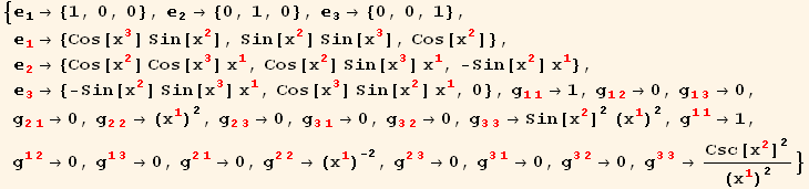 We give here as an example, the method to calculate the operators gradient, divergence, curl and laplacian in curvilinear coordinates.